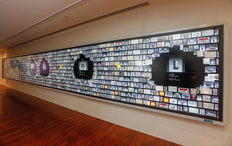 因應(yīng)全球智慧化文創(chuàng)展演新趨勢(shì),創(chuàng)利空間本次聯(lián)手國(guó)際動(dòng)畫(huà)界首屈一指的太極影音,整合故宮數(shù)位典藏資源,於導(dǎo)覽大廳打造結(jié)合科技與人文的智慧博物館互動(dòng)展示空間。其中包括長(zhǎng)達(dá) 12 公尺亞洲最大的「文物互動(dòng)導(dǎo)覽牆」(*),採(cǎi)用 20 片友達(dá) 55 吋高規(guī)格拼接牆顯示器組成,具有高解析、低反射、極窄邊框的搶眼設(shè)計(jì),拼接後的邊框?qū)挾葍H1.8mm,以近乎無(wú)接縫設(shè)計(jì)讓參觀者聚焦整體影像內(nèi)容,享受沉浸式觀賞體驗(yàn)。互動(dòng)導(dǎo)覽牆的設(shè)計(jì)靈感源自故宮多寶格文物,具有直覺(jué)友善的使用介面與紅外線(xiàn)感應(yīng)設(shè)計(jì),可讓多人同時(shí)透過(guò)點(diǎn)選、拖拉、滑動(dòng)等互動(dòng)手勢(shì),輕鬆飽覽 300 多件故宮文物精彩的圖像、影片、動(dòng)畫(huà)、360 度環(huán)物模型及書(shū)法釋文,整合線(xiàn)上線(xiàn)下體驗(yàn),吸引觀眾接續(xù)前往展間探索實(shí)體文物。位於導(dǎo)覽大廳兩側(cè)的「展訊輪播牆」則分別由4片55吋拼接牆顯示器所組成,透過(guò)螢?zāi)惠啿ス蕦m當(dāng)期展覽與重要活動(dòng)訊息,讓參觀者得以先睹為快。